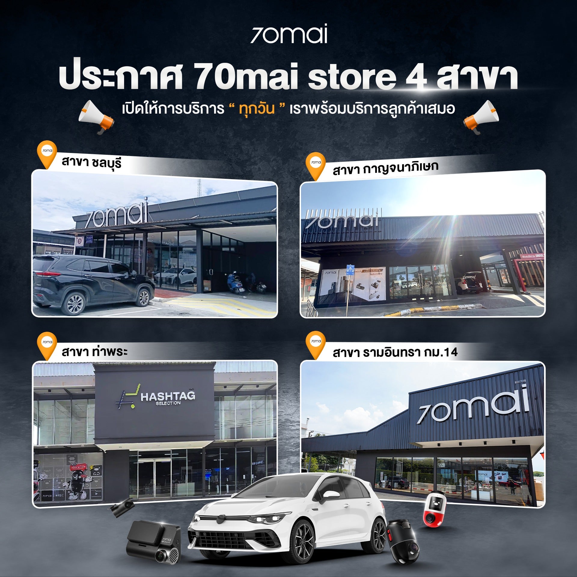 เพื่อขยายขอบเขตการดูแลให้ครอบคลุมพื้นที่เศรษฐกิจสำคัญในภาคตะวันออก 70mai จึงเปิดสาขาชลบุรีเพื่อให้บริการติดตั้งและดูแลหลังการขายตามมาตรฐานสากล