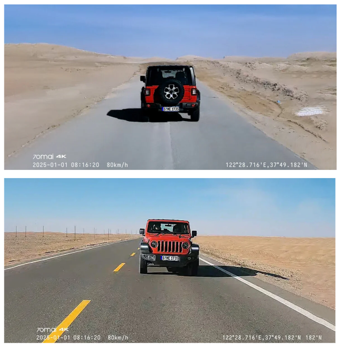 • การบันทึก 3 ช่องสัญญาณ: บันทึกวิดีโอพร้อมกันทั้งกล้องหน้า (4K), กล้องหลัง (4K) และกล้องภายในห้องโดยสาร (1080P)
