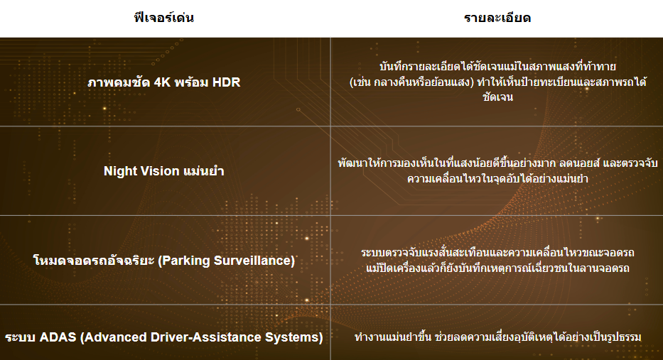 ฟีเจอร์อย่าง ADAS, Night Vision หรือ Parking Surveillance ช่วยลดความเสี่ยงทั้งระหว่างขับและตอนจอดรถ