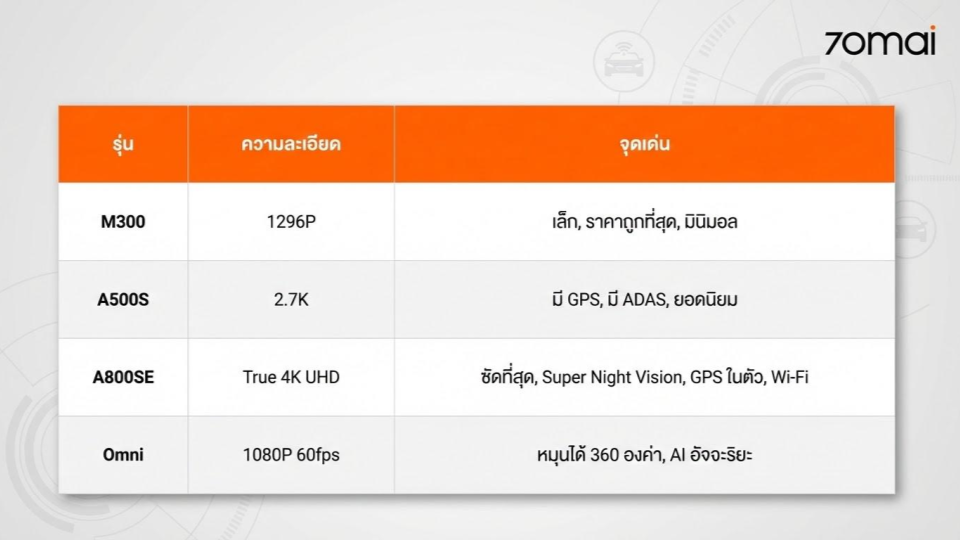เจาะลึกรีวิว กล้องติดรถยนต์ 70mai รุ่นไหนดี? สรุปครบทุกรุ่นยอดฮิตปี 2026